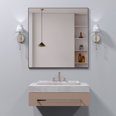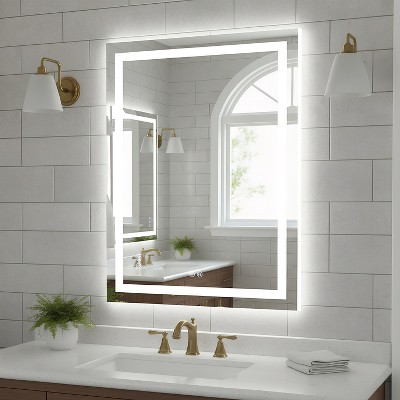 PAGED 32" x 48" Bathroom Mirror with LED Light, Dimmable Vanity Mirror with Aluminum Alloy Frame for Bathroom, Living Room, Anti-Fog, Silver