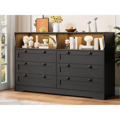 PAGED 4 Drawers Double Dresser Modern Chest of Drawers with 2 Pull Down Cabinets for Living Room, Hallway, Black