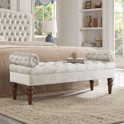 PAGED 51.5 Inch Upholstered Ottoman with Storage Space, Modern Linen Fabric Bench for Living Room, Bedroom, Entryway, Load 250 lb, Beige