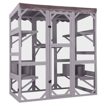 PAGED 62.6" Outdoor Wooden Pet House,Large Pet Crate with Waterproof Roof,Secure Rust-Proof Pet Crate for Patio or Backyard,Gray
