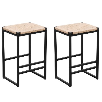 Product Name: PAGED Bar Stools Set of 2 Modern Counter Stools with Back and Footrest, Faux Leather Dining Chairs for Pub, Dining Room, Black