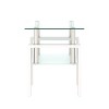 This modern end table features a sleek square design with a double-layer glass structure supported by metal legs for 150lbs load-bearing capacity.
