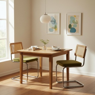PAGED Dining Chairs Set of 2 Modern Living Room Chair with Rattan Back and Stainless Chrome Base, Velvet Accent Chair for Dining Room, Kitchen, Beige