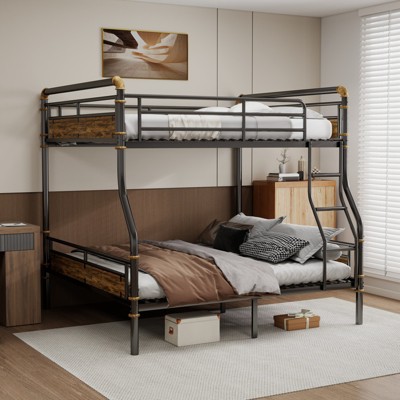 PAGED Full over Full Bunk Bed, Modern Metal Bed Frame, Convertible Triple Bed with Trundle, Ladder and Guardrail for Bedroom, White