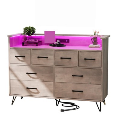 PAGED White Finish Dresser with 7 Drawers, Chest of Drawers with Golden Handle and Golden Legs, Storage Cabinet for Bedroom, Matte White