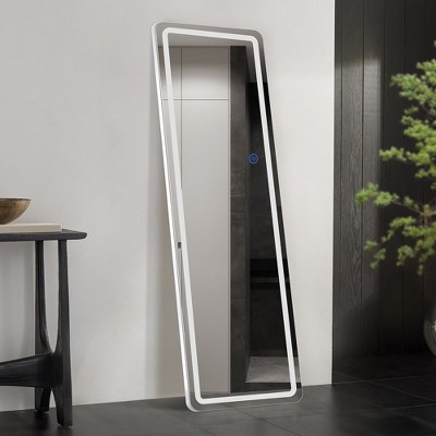 PAGED LED Full Length Mirror, Lighted Vanity Body Mirror, Wall-Mounted Mirror with Rounded Corners for Bedroom, Living Room, Silver