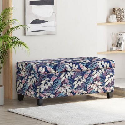 PAGED Luxury Storage Ottoman with Floral Patterned Fabric Multi-Functional Foot Stool with Soft-Close Hinges for Family Room, Hallway, Black+White
