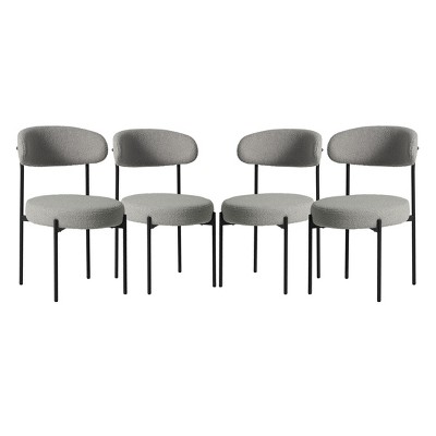 PAGED Mid-Century Minimalist Dining Chairs Set of 4, Light Gray Linen Kitchen Chairs with Metal Legs