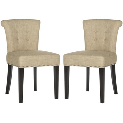 PAGED Mid Century Modern Dining Chairs Set of 2 Linen Upholstered Kitchen Chairs with Curved Backrest and Hardwood Frame for Living Room, Beige