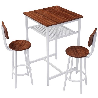 This bar table set with 2 backrest stools combines solid construction and modern style, ideal for small spaces.