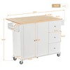 - Durable Work Surface: The kitchen island features a solid wood top that provides a sturdy and reliable area for food preparation and meal cooking