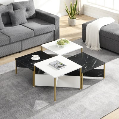 PAGED Modern Nesting Coffee Table Square Living Room Table Versatile End Table with Free Adjustable Shape for Living Room, Study, Black+White