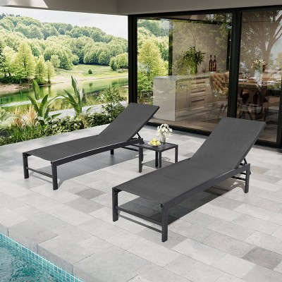 PAGED 3-Piece Oversized Chaise Lounge Chair Set with 5 Positions Patio Lounge Chair with Wheels, Cup Holder for Outside, Pool, Backyard, Black