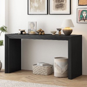 Product Name: PAGED Paulownia Veneer Striped Console Table for Entryway, Elegant Entryway Sofa Side Table, Solid Wood Entryway Table, Black Sofa Table