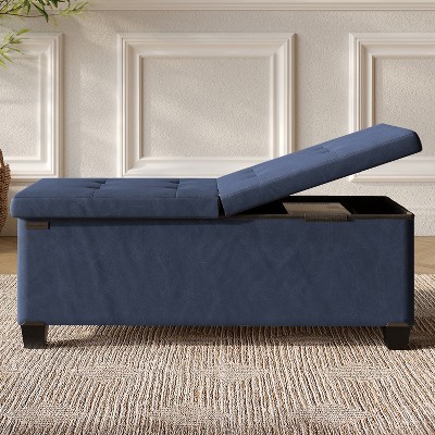 Product Name: PAGED Rectangular Storage Ottoman Contemporary Design Entryway Bench with Safety Hinge for Bedroom, Living Room, Blue