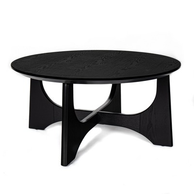PAGED Round Retro Side Table Modern Coffee Table with Metal Frame and Wooden Tabletop for Bederoom and Living Room, Natural