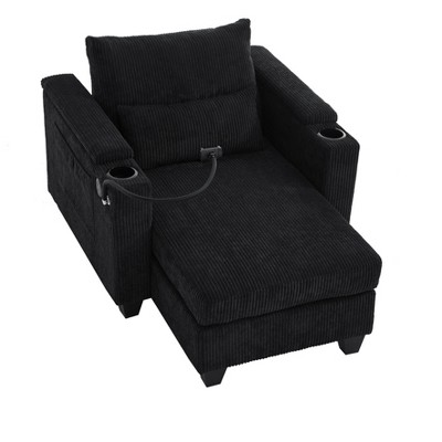 PAGED Single Sofa with Ottoman, Modern Comfy Accent Chair with Extra Wide Armrests, 1-Seat Sofa for Apartment, Living Room, Black