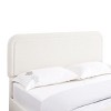 - Modern Upholstered Design: The bed frame features a curved, tufted headboard crafted from soft boucle fabric, offering a contemporary and minimalist aesthetic