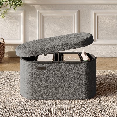 PAGED Storage Ottoman Modern Design Entryway Bench with 3 Flip Over Serving Trays and Large Interior Storage for Bedroom, Living Room