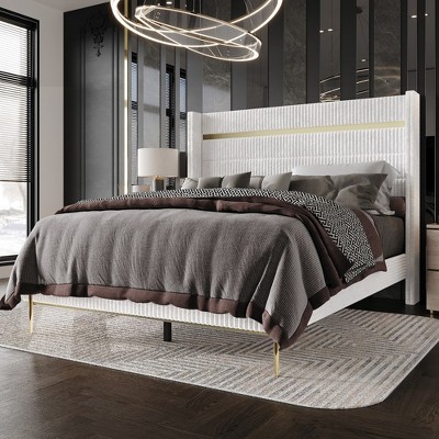 PAGED Bed Frame Floor Wooden Bed Frame with House Roof Frame and Fence Guardrails, Box Spring Required
