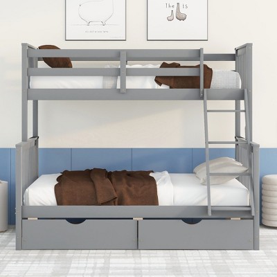 PAGED Twin Size Loft Bed Modern Wooden Bed Frame with Slide, Ladder and Guardrails for Bedroom, Gray