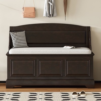 PAGED Vintage Storage Bench with Linen Cushion, Entryway Ottoman with Storage -Dual Compartments, Shoe Bench with Safe Soft-Close Devices-Antique Navy