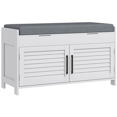 Product Name: PAGED Vintage Storage Bench with Linen Cushion, Entryway Ottoman with Storage -Dual Compartments, Shoe Bench with Safe Soft-Close Devices -White