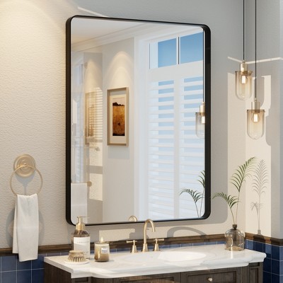 PAGED Wood Bathroom Mirror, 27"x37.4" Irrgeular Vanity Mirror with Sleek Design, Wall Mirror for Bathroom, Bedroom, Brown
