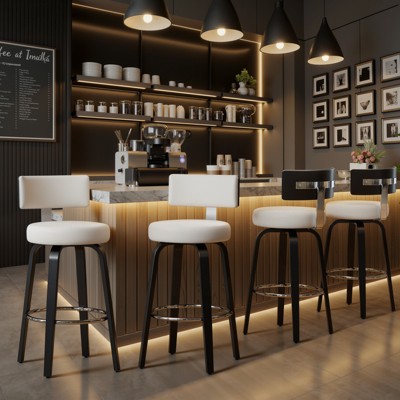 PAGED Wooden Bar Stools Set of 2, Modern Upholstered Counter Height Bar Chair with Back for Bar, Kitchen, Dining Room, Light Beige