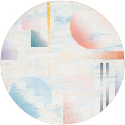 Paint Brush PTB119 Machine Washable Skid-Resistant Power Loomed Indoor Area Rug - Blue/Coral - 6'7" Round - Safavieh