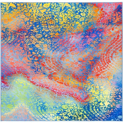 Paint Brush PTB189 Machine Washable Skid-Resistant Power Loomed Indoor Area Rug - Pink/Blue - 6'7"x6'7" - Safavieh