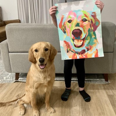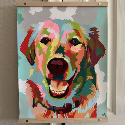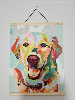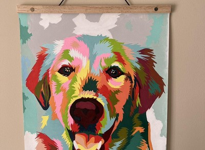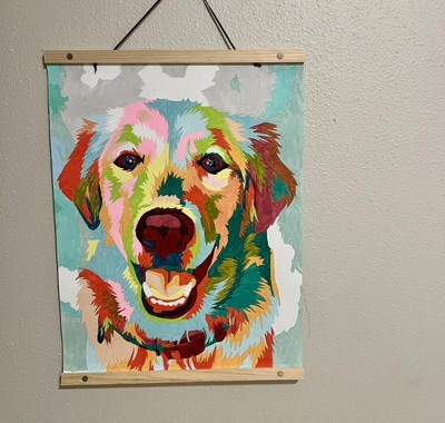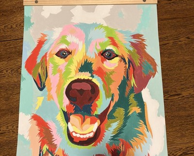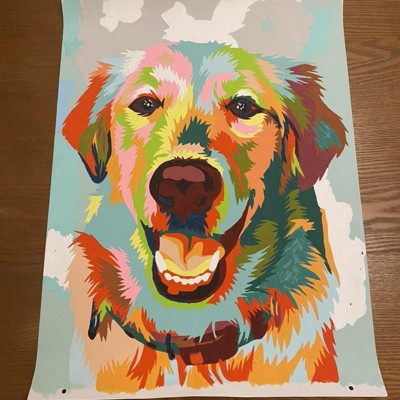 - Includes golden retriever image on canvas, 24 acrylic paint pots, paintbrush and instruction sheet