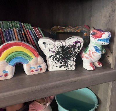- Includes 1 ceramic dinosaur, 1 paintbrush and 6 paint pots