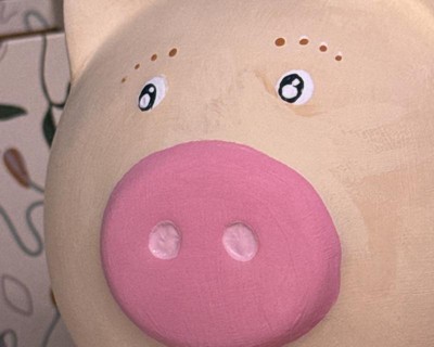 A: The piggy bank is made from ceramic.