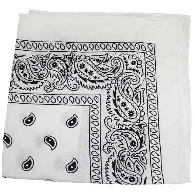Paisley 100% Cotton Double Sided Bandana - 22 inches (White)
