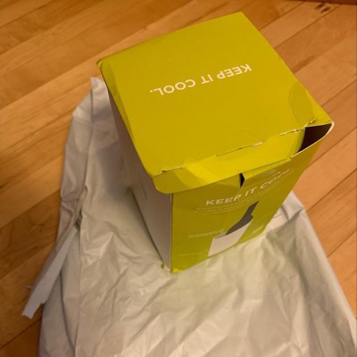 I ordered 2 wine chillers from Target and am returning this one. It looks quite nice, but this item takes up more space in the fridge/freezer vs the one I kept which had a removable insulated liner that goes in fridge/freezer and is much smaller. Major concern: this item is packaged in a lightweight box. For shipping, this box was placed in a flimsy plastic bag and not in a protective heavier box. As a result, the box was really banged up & misshapen upon arrival. I’m surprised the cooler itself didn’t get dented. Refer to photos.