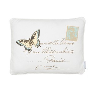 The Butterfly decorative pillow matches perfectly with the Levtex Home Palladium Grey bedding collection. This pillow is sized at 14x18in. and features a postcard design with a butterfly printed in teal, grey and yellow on a white ground. The sophisticated color palette makes this a versatile accessory for your bed, couch or favorite chair. The pilow comes pre-filled with a soft, luxurious feather inner.