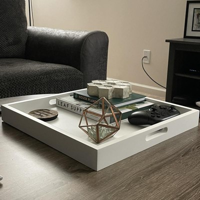 A: Hello Doug, this tray is made out of MDF painted white. Should you have any additional questions, please don't hesitate to reach out. Thanks!
