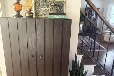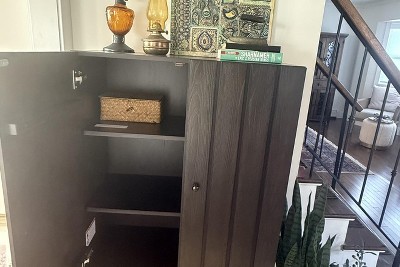 - Arched cabinet in dark brown