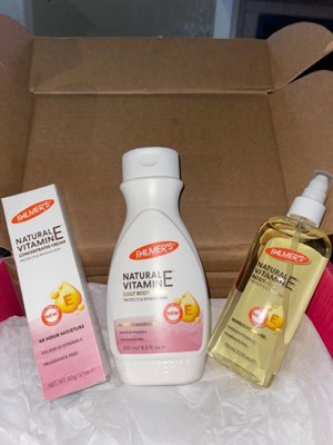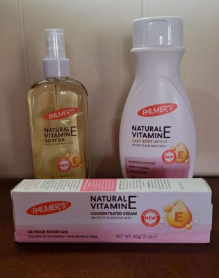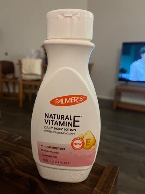 Palmer's Vitamin E Daily Body Lotion improves the appearance of dry, damaged skin all over body. Made with natural Vitamin E (Tocopherol), Cocoa Butter and our unique botanical blend to effectively soothe and nourish skin. Vitamin E is a powerful antioxidant and helps improve the appearance of scars and imperfections. Delivers daily moisturization to improve the appearance of dry, damaged or cracked skin, uneven skin tone and chafed skin.