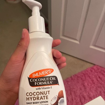 Palmer's Coconut Oil Body Lotion contains ethically and sustainably sourced Coconut Oil and Tahitian Monoi, infused with Tiaré flower petals. Fair Trade Certified Organic Extra Virgin Coconut Oil deeply moisturizes & softens skin, Tahitian Monoï Oil rehydrates and revitalizes dull, dry skin, and Sweet Almond Oil nourishes skin for a healthy-looking glow. Together, these raw, natural ingredients deliver luxuriously rich hydration to keep skin radiant and healthy-looking. (Due to high concentration of natural ingredients, product color and consistency may vary.)Palmer's Coconut Oil Body Lotion is free of parabens, mineral oil, sulfates, pththalates, and dyes. Convenient size is airline compliant and makes this lotion perfect for on-the-go use.