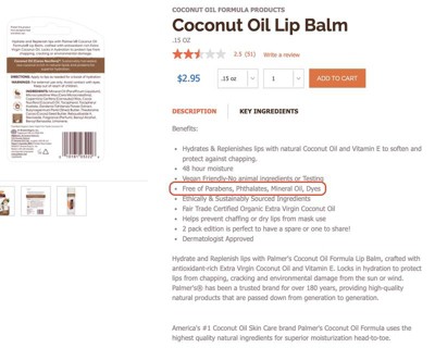 Falsely claims to be free of mineral oils