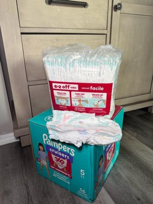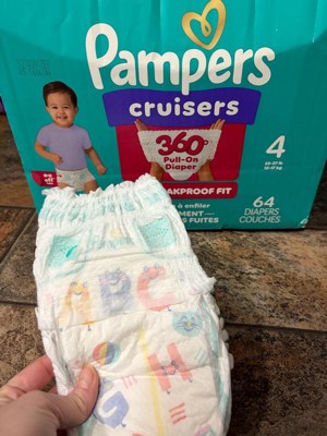 A: Cruisers 360 diaper pants are designed especially for active babies. We know as your baby grows and becomes more active, diaper changes can be more challenging, and taped diapers may not always fit as close and snug. Cruisers 360 diaper pants are designed to be easy on and easy off and may be easier to change standing up. They provide an adaptive and comfortable fit for your active baby while still offering the Pampers protection you love.