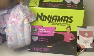 Ninjamas Girls Nighttime Bedwetting Underwear: 44 Count overnight underwear for girls, Size S/M; fits children 38-70 lbs. Ninjamas nighttime products are FSA/HSA-eligible in the US.