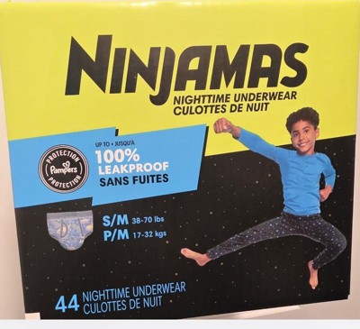 A: The S/M 50 count are for weight 38-65 lbs. My son has nighttime accidents and is 5 years old and wears size 5/6 in clothes. They work great!
