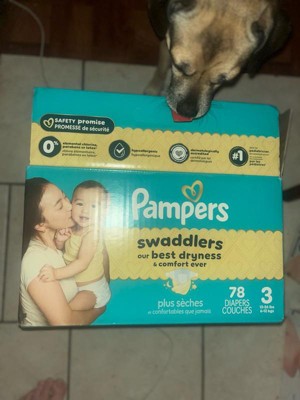 Wrap your baby in our best dryness and comfort ever. Try Pampers Swaddlers. These Pampers disposable diapers are designed with a KeepDry Liner and irresistible pillowy softness to keep your baby dry and comfortable from their very first days and beyond. Plus, they're drier than the Luxury Diaper for all-night comfort. Pampers Swaddlers are dermatologist tested, hypoallergenic, and free of elemental chlorine, parabens, and latex** to protect babies' sensitive skin. Pampers Swaddlers surround your baby with up to 100% blowout and leak protection, thanks to their absorbent core and All-Around LeakGuard with Blowout Barrier. Trusted by pediatricians and parents alike, Pampers Swaddlers are from the Most Awarded Diaper Brand^, the #1 pediatrician recommended brand^^, Best of Babylist winner, and the #1 choice of parents^^^. Pampers has been providing products that prioritize comfort, safety, and effectiveness for over 60 years. Earn savings while you shop with Pampers Rewards. Every 10 scans = $10 off. Scan. Earn. Repeat. Use them with Pampers Sensitive Baby Wipes for healthy skin. Pampers Swaddlers are available in preemie diapers, newborn diapers, and size 1 through size 8. To find your baby's ideal fit, just measure by weight and reference our available baby diaper sizes. Pampers preemie diapers (up to 4 lbs.), newborn diapers (up to 10 lbs.), size 1 diapers (8-14 lbs.), size 2 diapers (10-22 lbs.), size 3 diapers (13-26 lbs.), size 4 diapers (15-34 lbs.), size 5 diapers (20-37 lbs.), size 6 diapers (23-34 lbs.), size 7 diapers (26-50 lbs.), size 8 diapers (30+ lbs.). *Based on S4 Luxury Diaper Brand. 3 typical wettings of 75mL **No natural rubber. ^ Based on Awards Given 2021-2025 ^^ Based on 2024 survey of U.S. and Canadian pediatricians. ^^^ Based on Nielsen dollar sales L52W