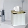 - An open bottom allows for easy refills and unlike other tissue box holders, does not have a refill door that is prone to breakage. An extra-wide opening at the top allows for seamless tissue pulls.