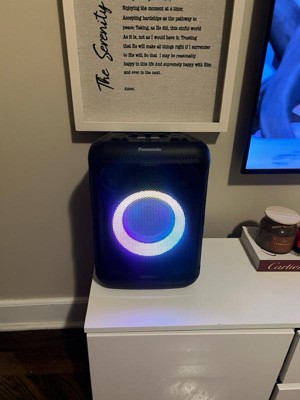 [This review was collected as part of a promotion.] Im amazed with how cool this Panasonic speaker system is! The sound quality blows me away, it's incredibly crisp with rich surround sound that really immerses you in the music. The audio is just outstanding! Plus, the powerful and durable battery keeps the party going for hours on end. What I love most is its sleek design, making it super easy to grab and take anywhere. And let me tell you about the LED lights! They burst with vibrant colors that dance along with the rhythm of the music, adding an extra layer of excitement to any gathering. It’s so user-friendly too! Pairing it with my Bluetooth devices is a breeze, and I can even plug in a microphone for some karaoke fun! Its important to mention that it came with different plugs to connecting to power, making it perfect for travel. This speaker truly elevates every moment! Very recommend