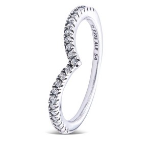 A slim line of shimmering stones adorns this V-shaped sterling silver ring bringing glamour to its graphic design. Wear this wishbone alone or stack it with other chevron rings in contrasting textures.