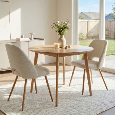 Panipeachy Upholstered Dining Chairs Set of 4, Modern Beige Faux Shearling Side Chair with Matte Black Legs